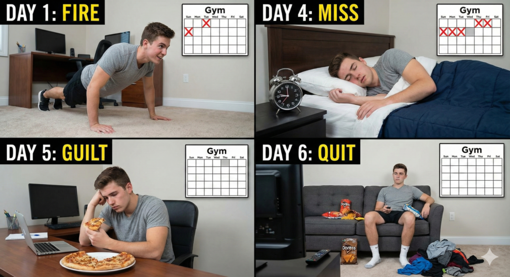 You start strong, but progress only exists as a streak. One missed day breaks the chain, motivation drops, and the habit quietly dissolves.